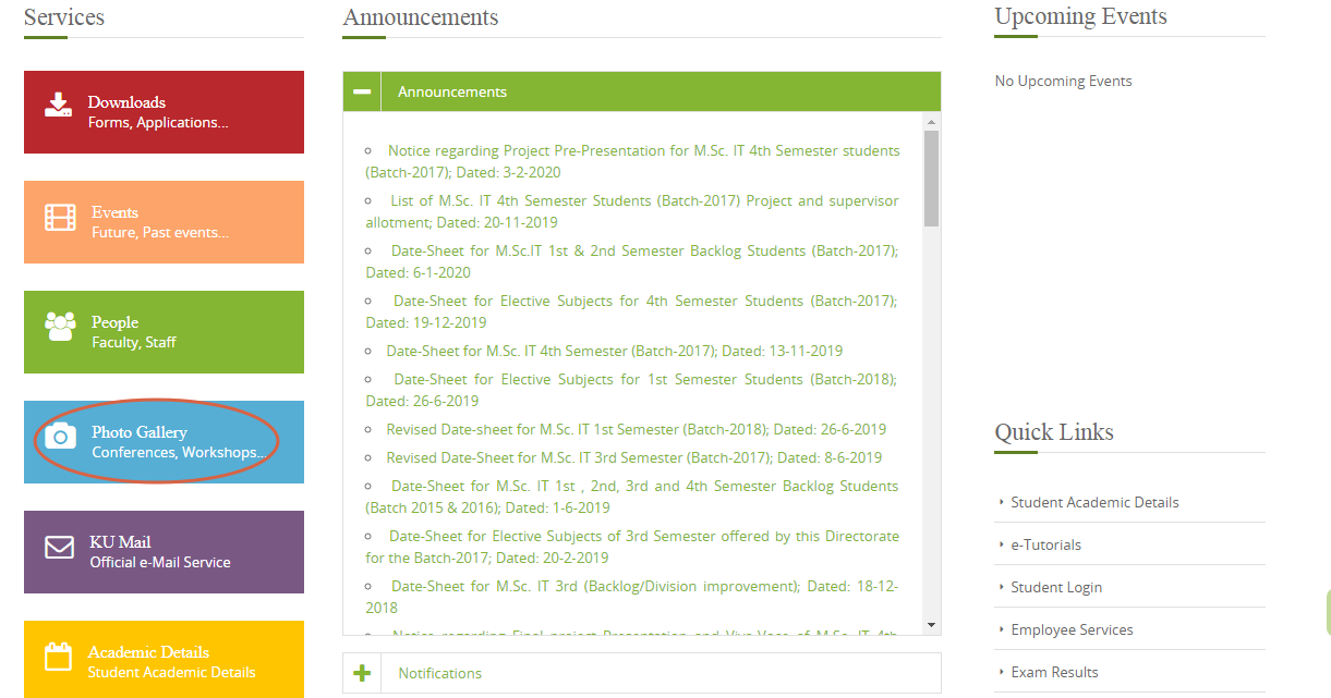 This web page below shows the photo gallery section, wherein user can access images related to workshops and conference.